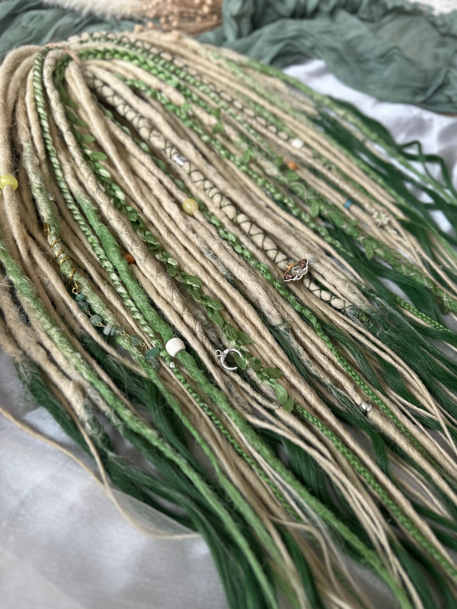 Купить Комплект де дредов «Лесной», микс фактурные гладкие дреды, косы, локоны анна, 70см, 50 шт с доставкой по всей России.