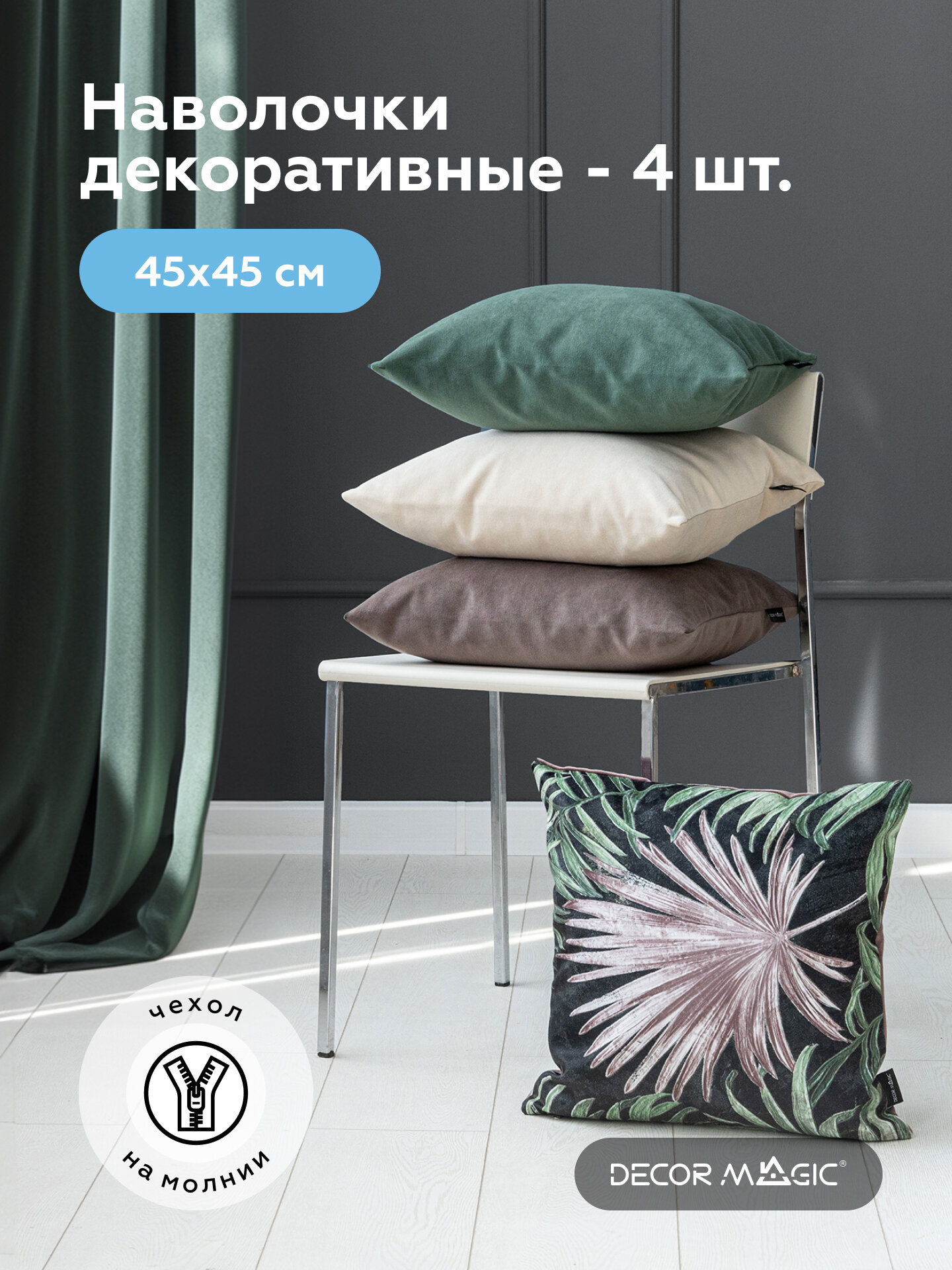 Комплект декоративных наволочек с молнией 45х45 ORGANIK/SOUL, 4 шт, велюр: сравнение цен, характеристики, фото, актуальное наличие и цены.