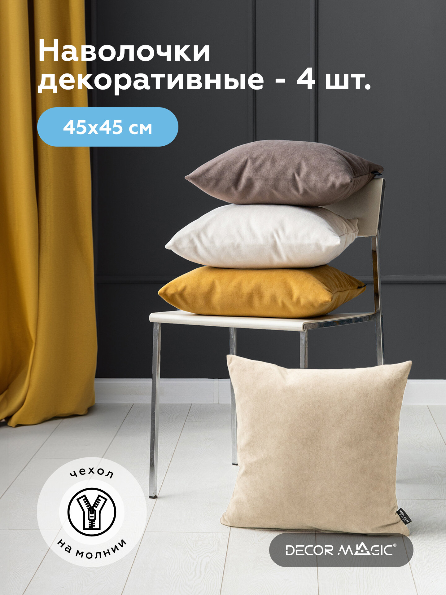 Купить Комплект декоративных наволочек с молнией 45х45 SALVADOR 4 шт, велюр с доставкой по всей России.