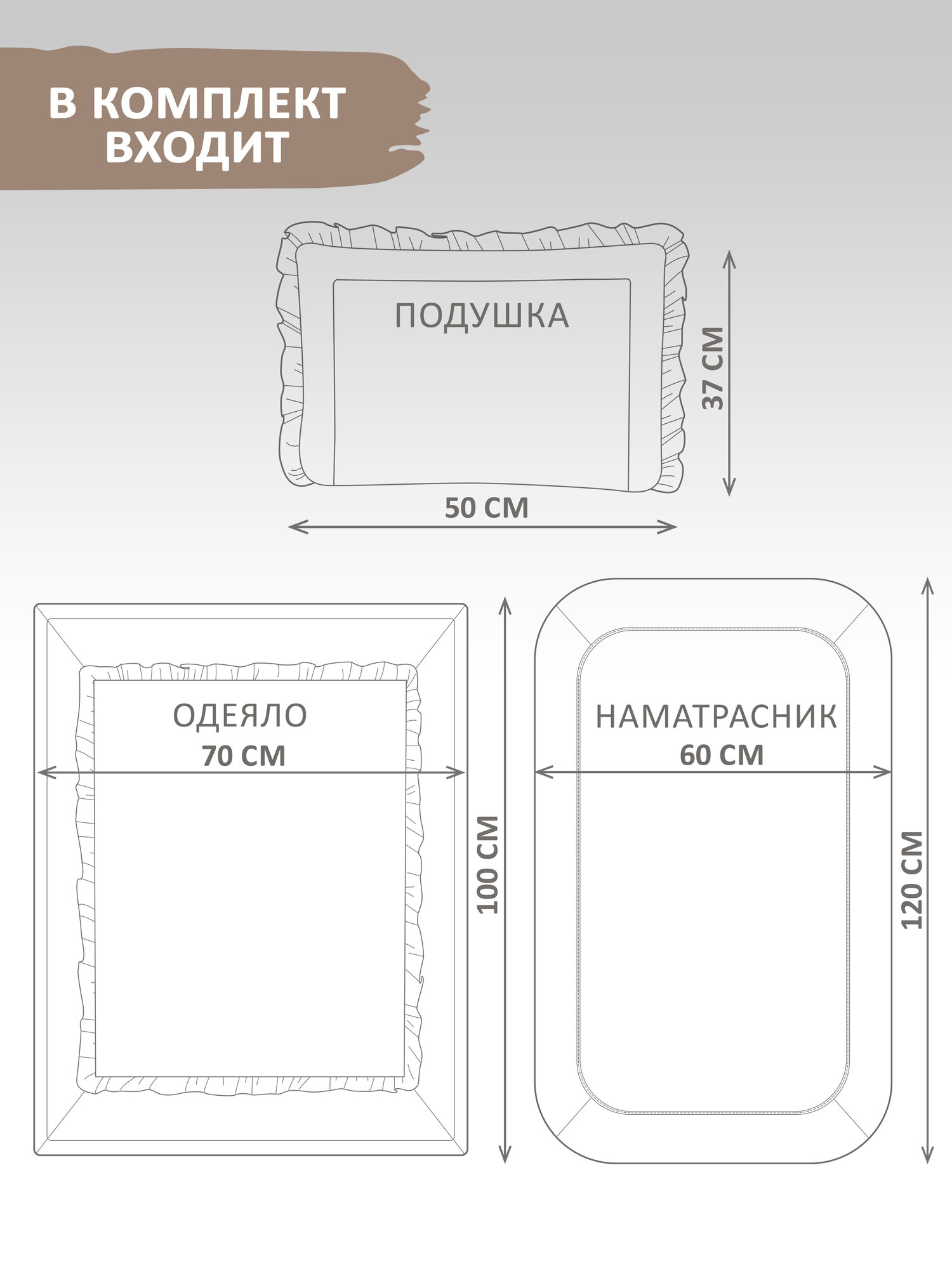 Комплект детского постельного белья с рюшами в кроватку одеяло 70х100 наматрасник 60х120 подушка: сравнение цен, характеристики, фото, актуальное наличие и цены.