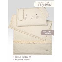 Комплект детского постельного белья с рюшей «Зайка» молочный сатин, подушка 30*50см и одеяло 100*70см: сравнение цен, характеристики, фото, актуальное наличие и цены.