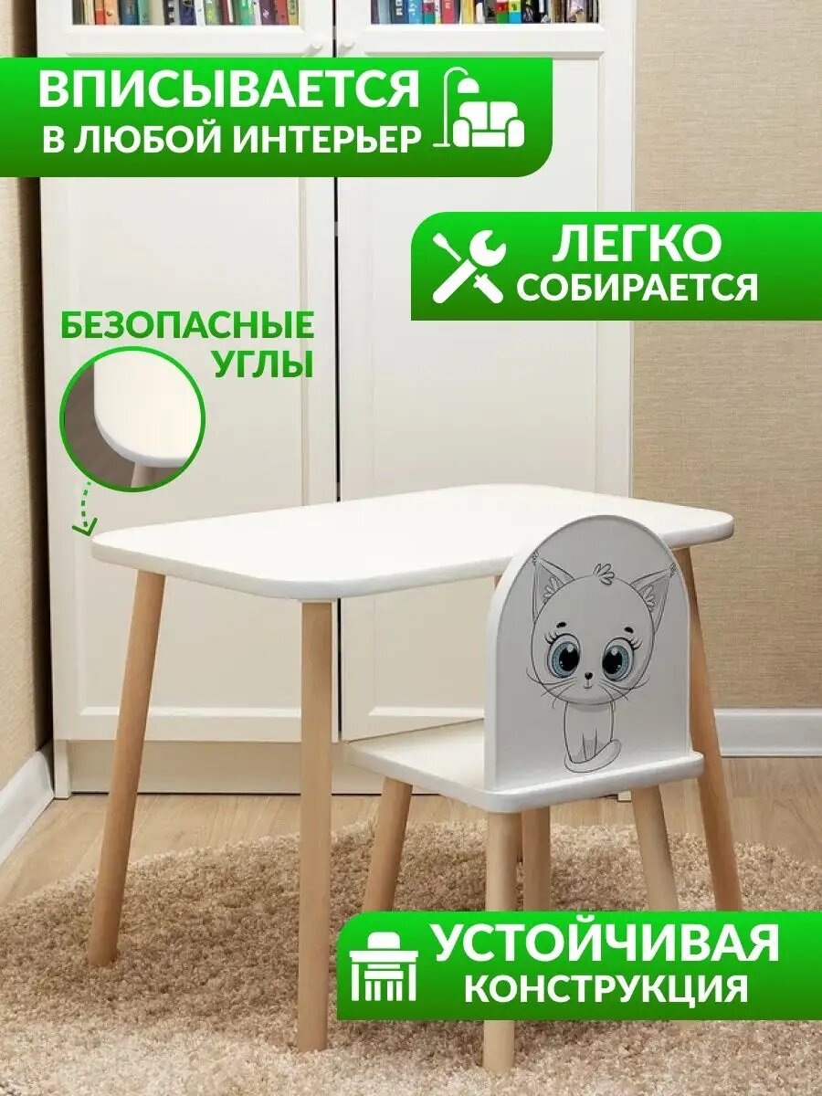 Комплект детской мебели из стола и стульчика для детей "Киска" от 1,5 до 6 лет. Внимание! К заказу стульчик на последнем фото.