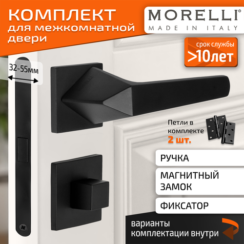 Купить Комплект для межкомнатной двери Morelli / Дверная ручка MH 55 S6 BL + поворотник + магнитный замок + врезные петли / черный матовый с доставкой по всей России.