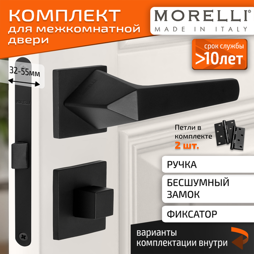 Купить Комплект для межкомнатной двери Morelli / Дверная ручка MH 55 S6 BL + поворотник + бесшумный замок + врезные петли / черный матовый с доставкой по всей России.