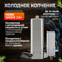 Комплект для холодного копчения №2 от Hobbi Smoke - это готовый набор для создания вкусных и ароматных копченых блюд. В комплект входят все необходимые элементы для копчения продуктов, включая емкость объемом 90 литров, дымогенератор, охладитель и поддон для сбора жира.