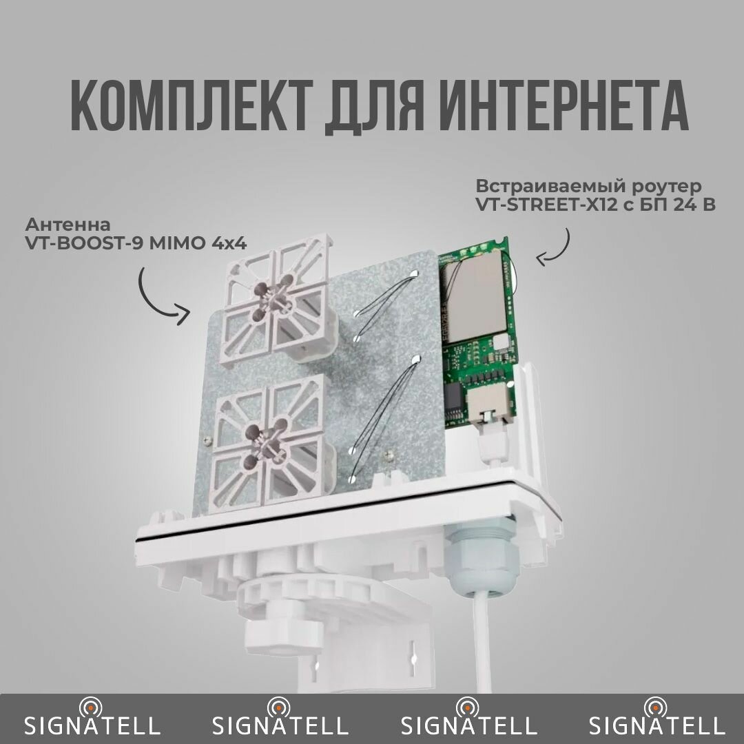 Купить Комплект интернета с агрегацией Cat 12 на базе антенны VT-Boost 4х4 и Встраиваемый роутер VT-STREET-X12 с БП 24 В с доставкой по всей России.