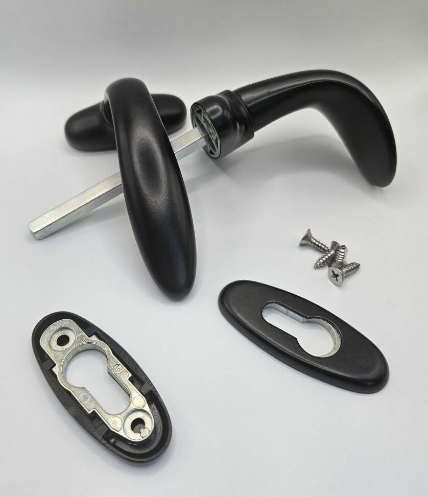 Купить Комплект для калитки (ручка ухват с накладками на цилиндр, черная, ral 9005 + замок с личинкой DORMA 80 + электромагнитная защелка) с доставкой по всей России.