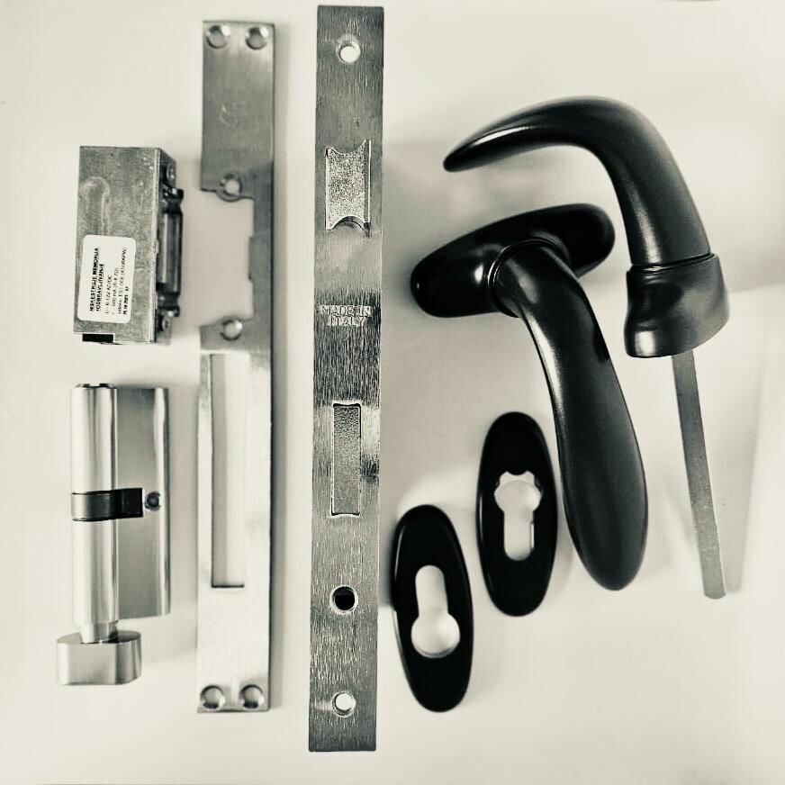 Комплект для калитки (ручка ухват с накладками на цилиндр, черная, ral 9005 + замок с личинкой DORMA 80 + электромагнитная защелка): сравнение цен, характеристики, фото, актуальное наличие и цены.