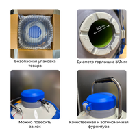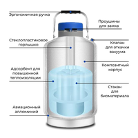 Готовое решение для работы косметолога! Здесь в комплекте: 1. Сосуд Дьюара на 3 литра с противоударным чехлом 2. Измеритель остатка жидкого азота в сосуде Дьюра 3. Перчатки для работы с жидким азотом 4. Комплект из 2х стаканов с перфорации для хранения и 1 стакан без перфорации для набора жидкого азота из сосуда 5. Термокружка Сосуд Дьюара - идеальное решение для хранения и транспортировки жидкого азота и других низкотемпературных субстанций! Вот несколько преимуществ нашего уникального сосуда: * Высокая эффективность охлаждения: Сосуд Дьюара изготовлен из специальных материалов, которые обеспечивают отличную термоизоляцию и минимизируют потери температуры. Это позволяет долго и стабильно поддерживать низкие температуры внутри сосуда. * Безопасность: Сосуд Дьюара имеет надежные многослойные стенки, которые обеспечивают высокую степень безопасности при работе с криогенными жидкостями. Он оснащен удобным клапаном для слива жидкости и надежной крышкой. * Простота использования: Сосуд Дьюара легок в обслуживании и удобен в эксплуатации. Он компактен и портативен, что делает его идеальным выбором как для лабораторных исследований, так и для медицинских целей. * Долгий срок службы: Высококачественные материалы и конструкция сосуда Дьюара обеспечивают его долгий срок службы и надежность. Не упустите шанс приобрести этот высокоэффективный сосуд Дьюара по доступной цене! Обеспечьте надежное и стабильное хранение низкотемпературных жидкостей. Жидкий азот используется для приготовления "дыхания дракона", молекулярного мороженого и других криодесертов. Также используется для гильзовки двигателей Объем 3 литров, фактический объем 3,3 литра Полное испарение жидкого азота 15-28 дней Вес пустого соуда 3.1 кг Диаметр горловины 50мм Диаметр сосуда 22,4 см Высота сосуда 42 см