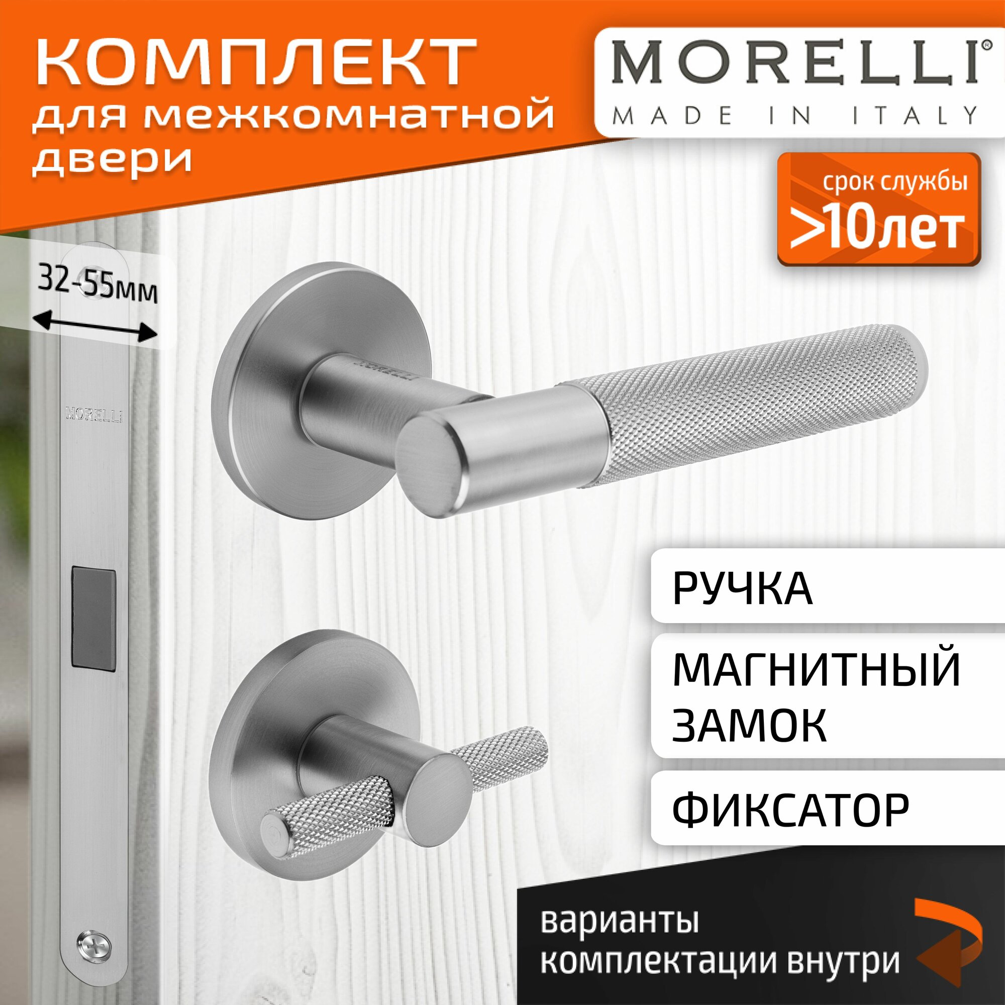 Комплект для межкомнатной двери Morelli / Дверная ручка MH 57 R6T SC + поворотник + магнитный замок / Матовый хром: сравнение цен, характеристики, фото, актуальное наличие и цены.