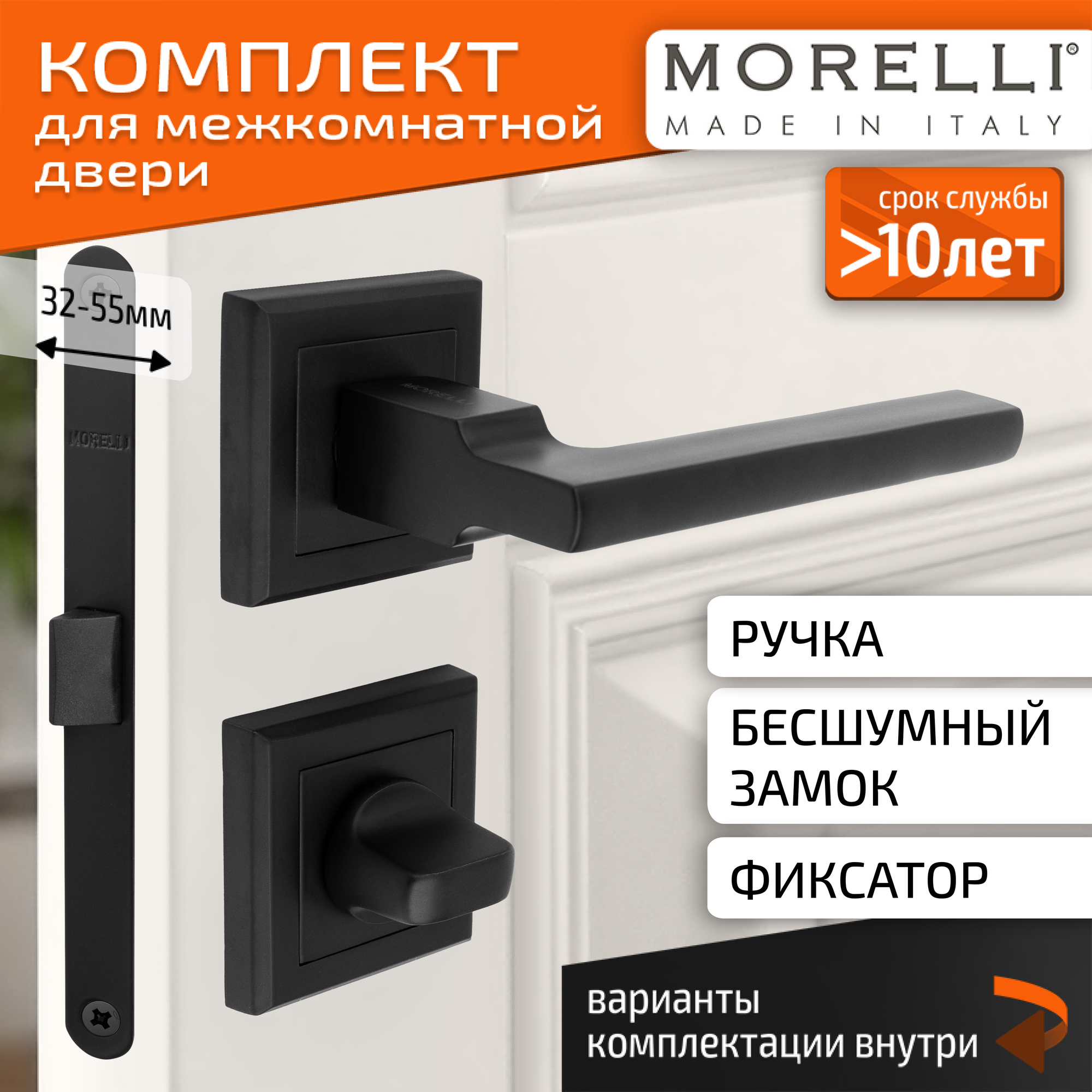 Купить Комплект для межкомнатной двери Morelli ручка MH 35 S BL + поворотник + бесшумный замок / черный матовый с доставкой по всей России.