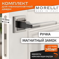 Комплект для межкомнатной двери Morelli ручка MH 35 S SN/BN + магнитный замок / белый никель/черный никель