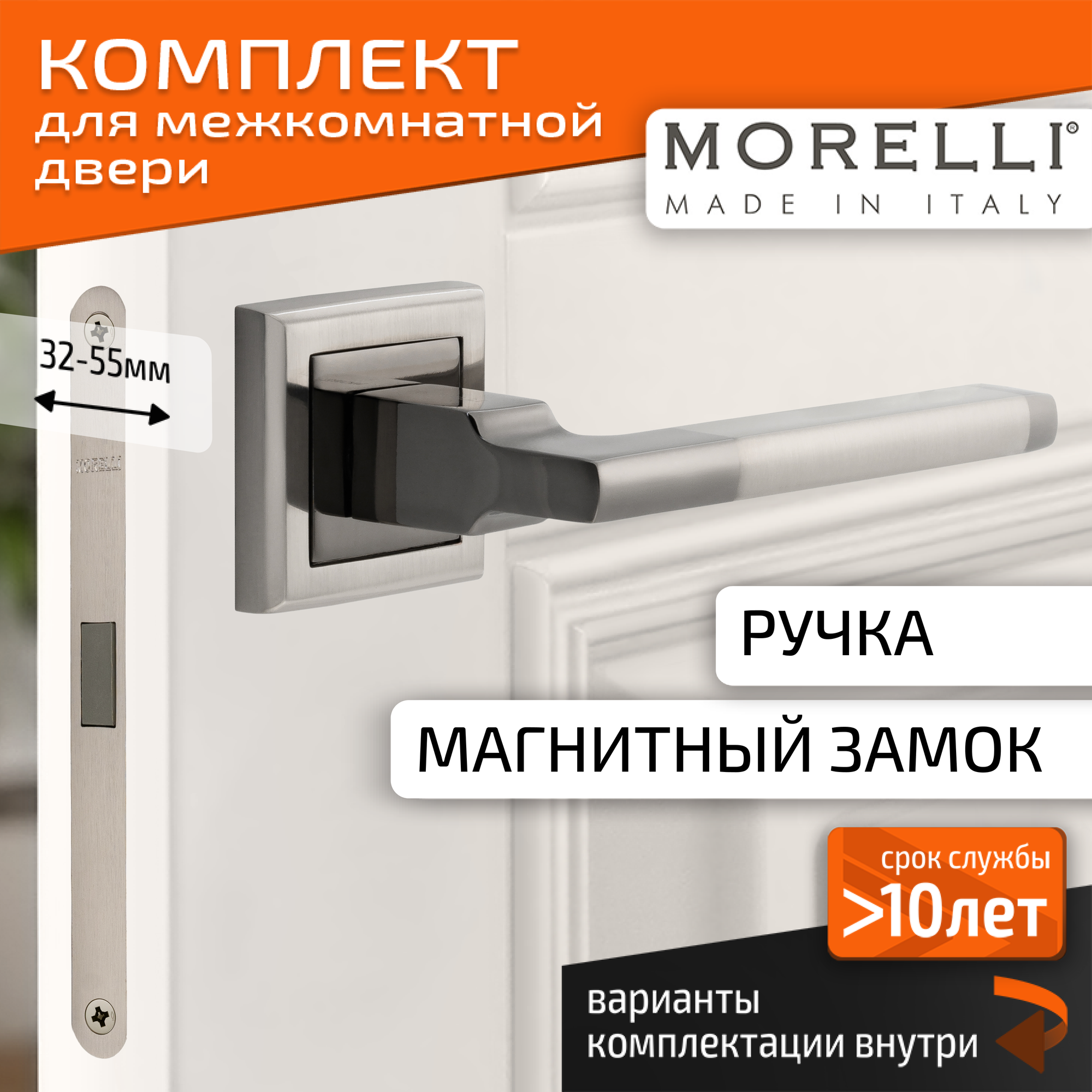 Комплект для межкомнатной двери Morelli ручка MH 35 S SN/BN + магнитный замок / белый никель/черный никель: сравнение цен, характеристики, фото, актуальное наличие и цены.