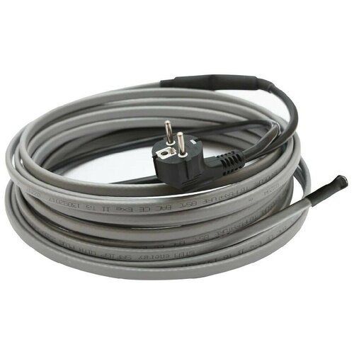 Этот комплект подходит для наружного подогрева труб, внутреннего подогрева канализационных труб и подогрева баков. Система подогрева трубопрово́дов заключается в поддержании температуры и защиты от замерзания с помощью систем кабельного обогрева. Образование льда не всегда приводит к разрыву трубы, но может сузить ее сечение, что отразится на давлении в трубопроводе и скорости передачи жидкости. К тому же, периодическое образование льда существенно снижает срок эксплуатации труб. Кабельный подогрев трубопровода – оптимальный способ защиты системы водоснабжения и канализации. Саморегулирующийся нагревательный кабель наиболее удобен в монтаже. Полимерная матрица, используемая в конструкции кабеля, позволяет менять свою мощность в зависимости от температуры окружающей среды. Чем ниже температура, тем больше мощность кабеля. Технические характеристики: Напряжение питания ~ 220–240 В / 50 Гц Линейная мощность 16 Вт/м Степень защиты оболочки IP67 Срок службы 25 лет Максимальная рабочая температура 65°С / 85°С