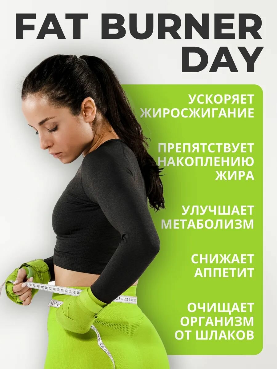 Fat Burner day снижает аппетит, ускоряет метаболизм, повышает способность организма к жиросжиганию, выводит шлаки и токсины. Упаковка дневного комплекса для похудения включает 30 капсул.