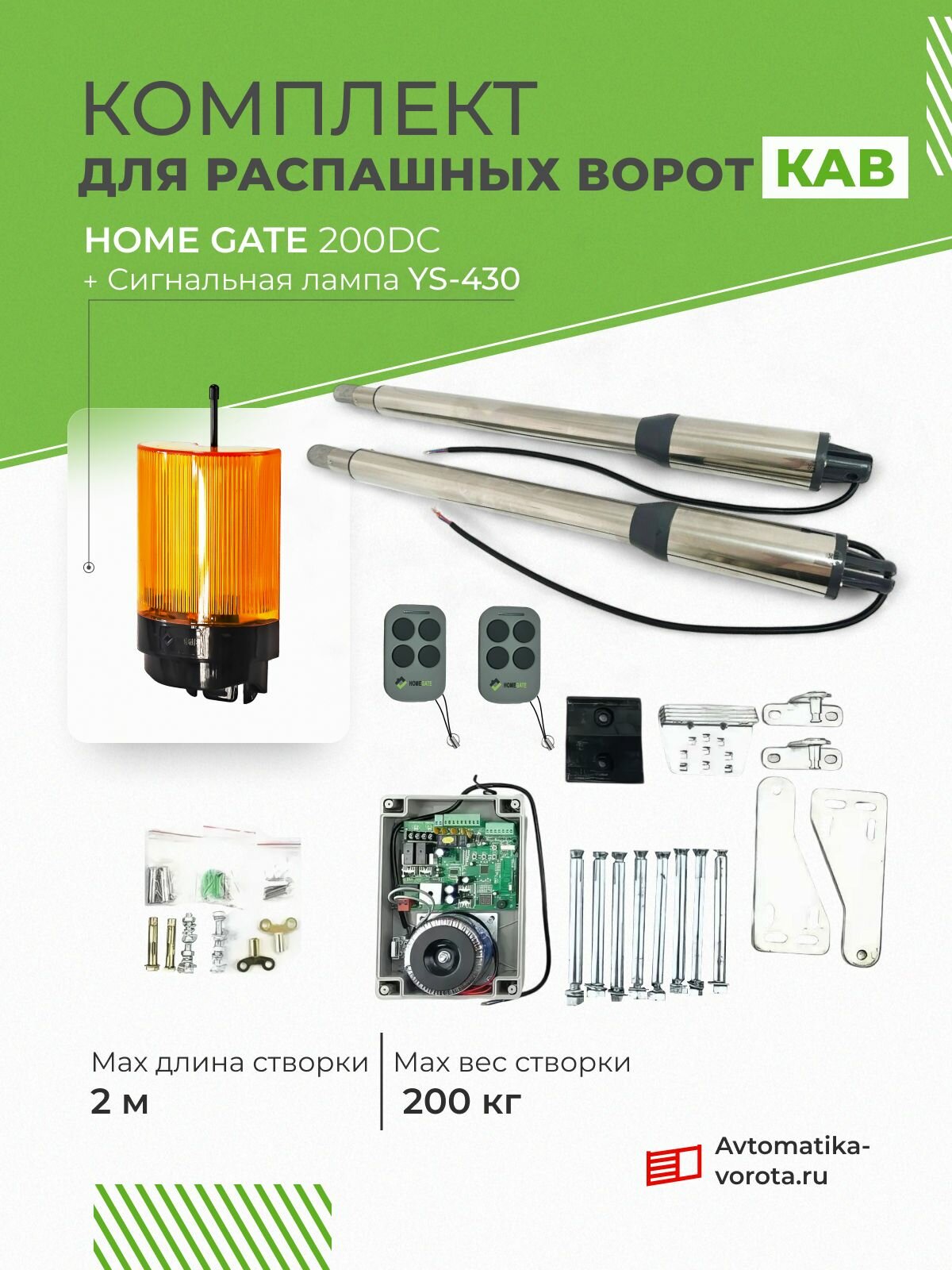 Комплект для распашных ворот Home Gate 200DC с сигнальной лампой YS-422 / макс. вес одной створки 200 кг, макс. длина створки 2 м: сравнение цен, характеристики, фото, актуальное наличие и цены.