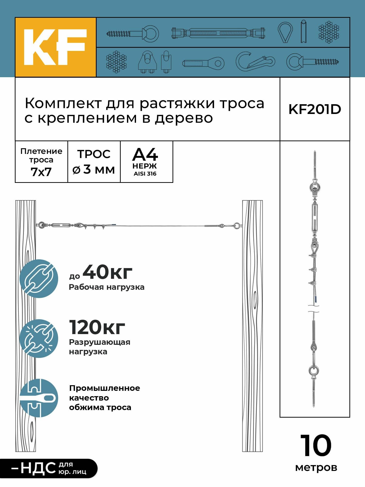 Комплект для растяжки троса с креплением в дерево KREPFIELD KF201D 10 метров: сравнение цен, характеристики, фото, актуальное наличие и цены.
