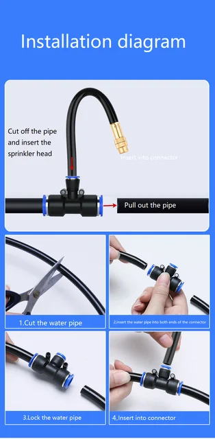 Гибкий металлический шланг с поворотом на 360 градусов: Распылительная насадка распылительного разбрызгивателя оснащена встроенным металлическим шлангом, который можно сгибать и фиксировать в любом направлении, что позволяет легко настроить желаемое место или направление распыления.