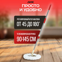 Купить Комплект для уборки AVIK / Швабра с отжимом и ведром (145 см ручка + 3 насадки + дозатор для моющего средства) с доставкой по всей России.