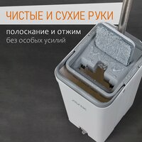 10) Автоматический отжим и полоскание: не нужно касаться грязной тряпки руками. Комплект позволит сохранить руки в чистоте, а маникюр всегда будет опрятный. Степень отжима можно регулировать самостоятельно за счёт силы надавливания и скорости;