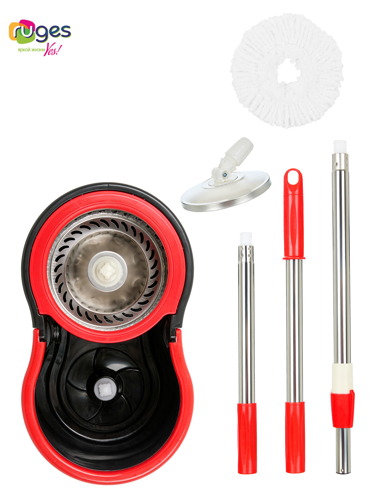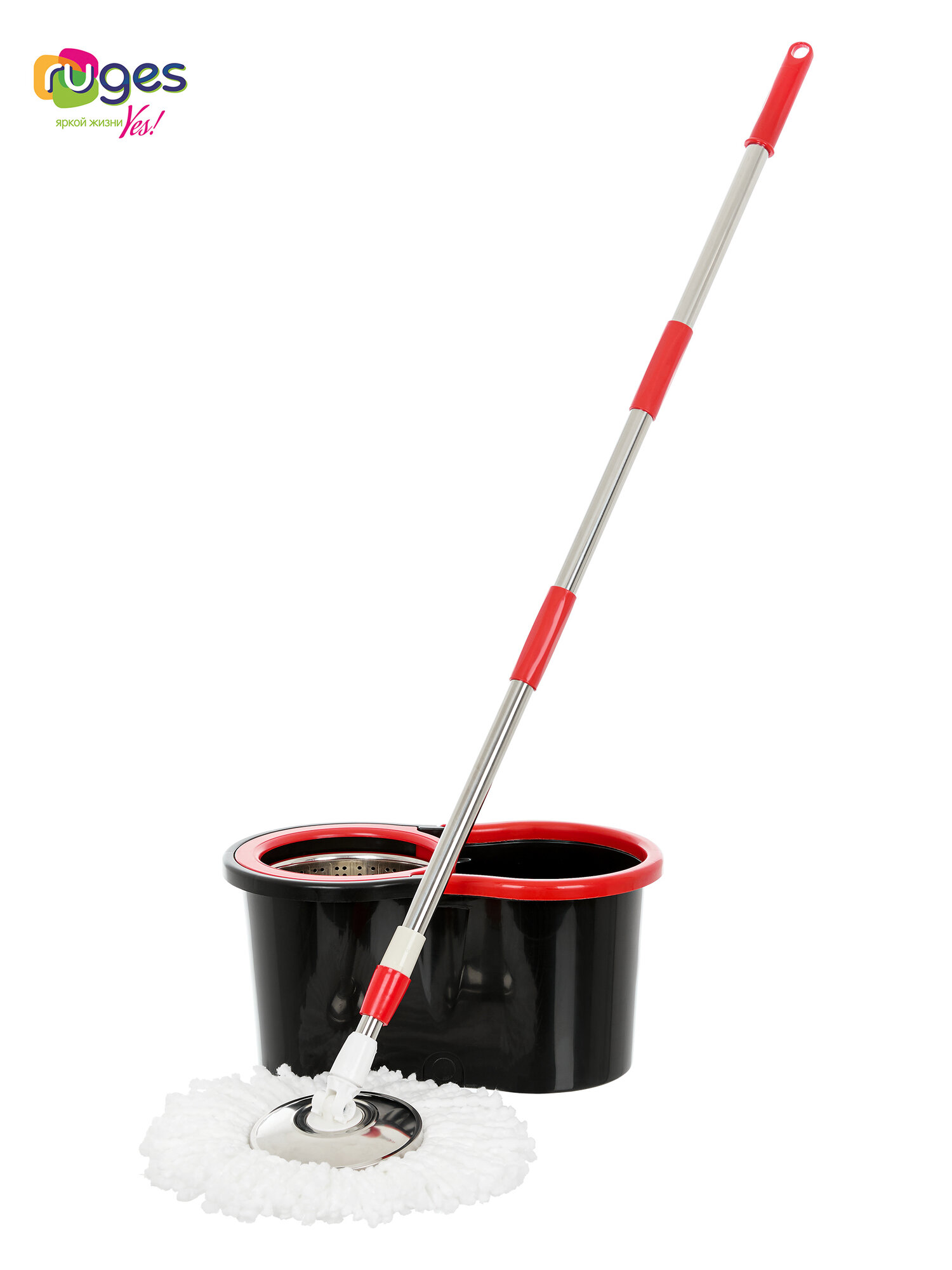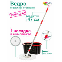 Комплект для уборки RUGES: швабра с отжимом и ведром (147 см ручка + 1 насадка) / швабра лентяйка вертушка / черная: сравнение цен, характеристики, фото, актуальное наличие и цены.