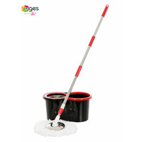 Купить Комплект для уборки RUGES: швабра с отжимом и ведром (147 см ручка + 1 насадка) / швабра лентяйка вертушка / черная с доставкой по всей России.
