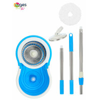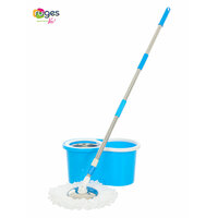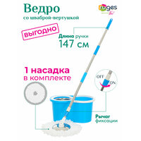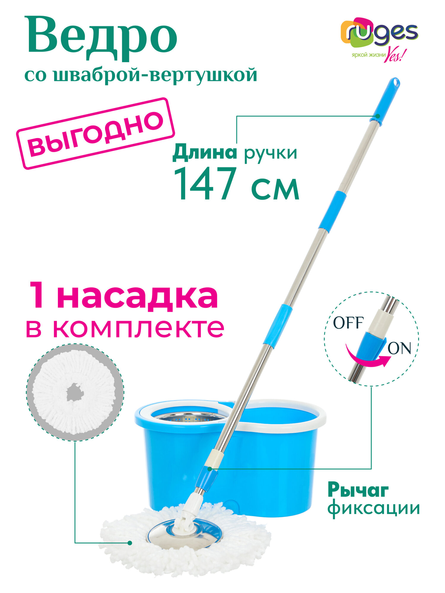 Купить Комплект для уборки RUGES: швабра с отжимом и ведром (147 см ручка + 1 насадка) / швабра лентяйка вертушка / синяя с доставкой по всей России.