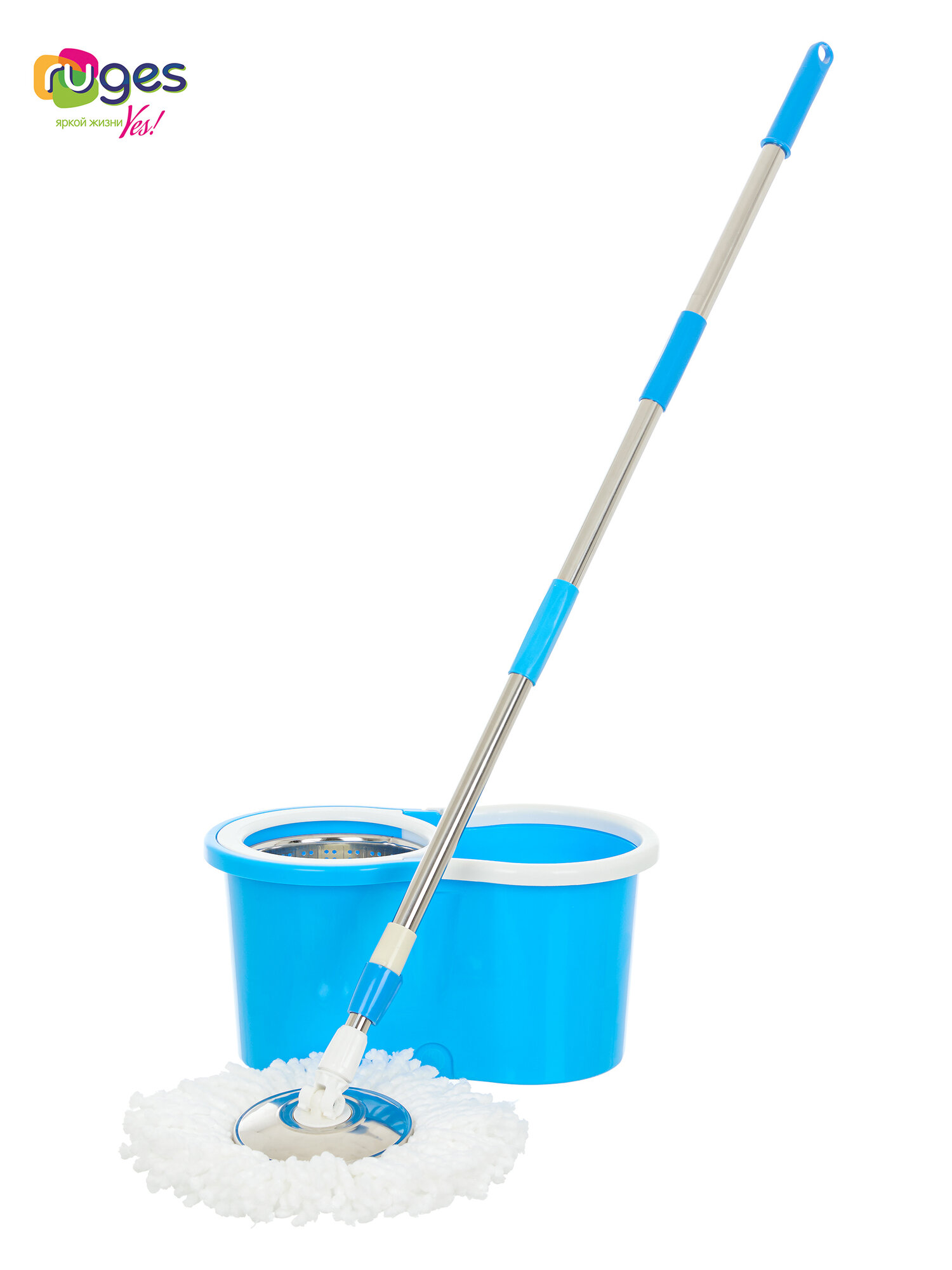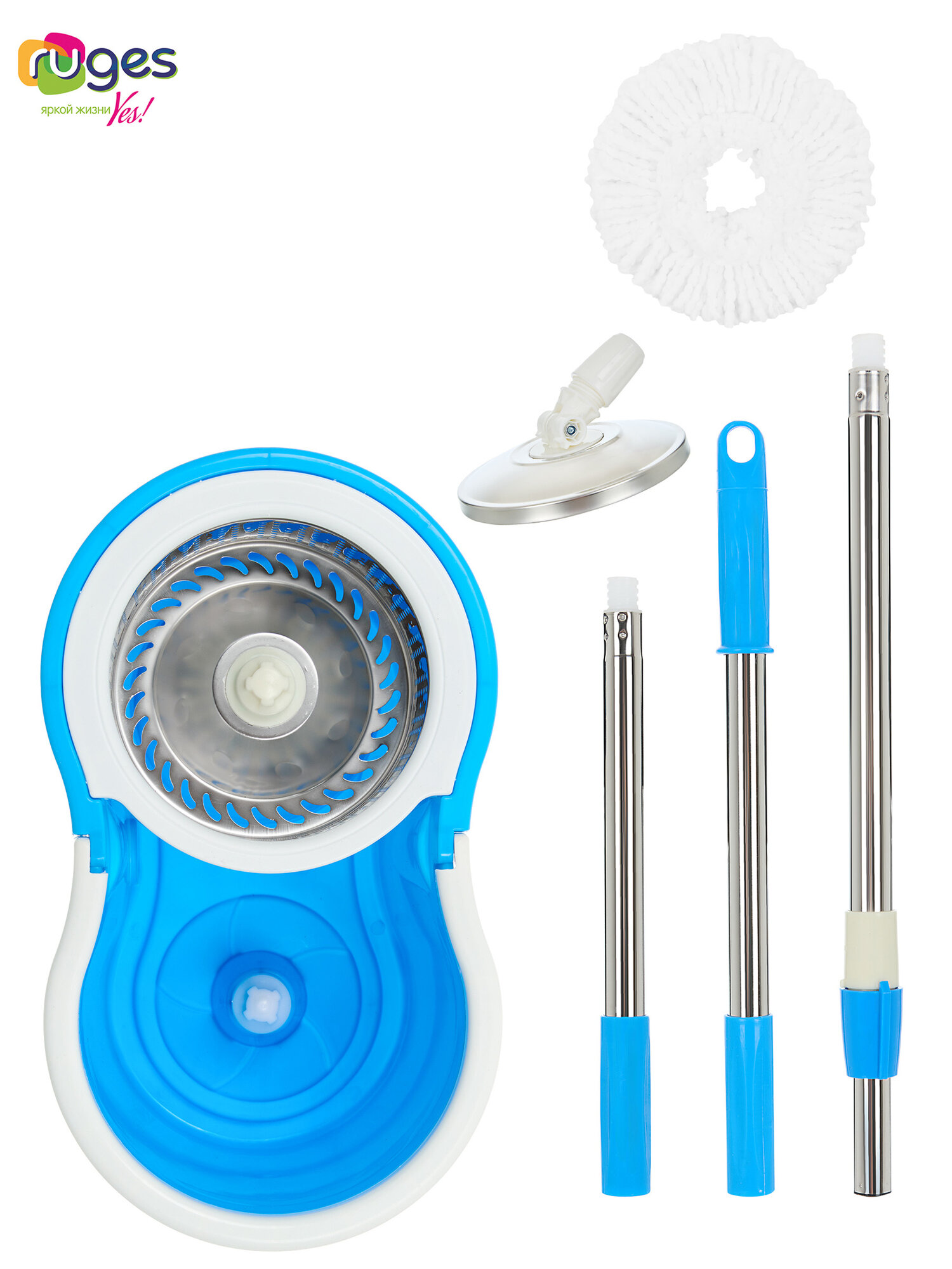 Комплект для уборки RUGES: швабра с отжимом и ведром (147 см ручка + 1 насадка) / швабра лентяйка вертушка / синяя: сравнение цен, характеристики, фото, актуальное наличие и цены.