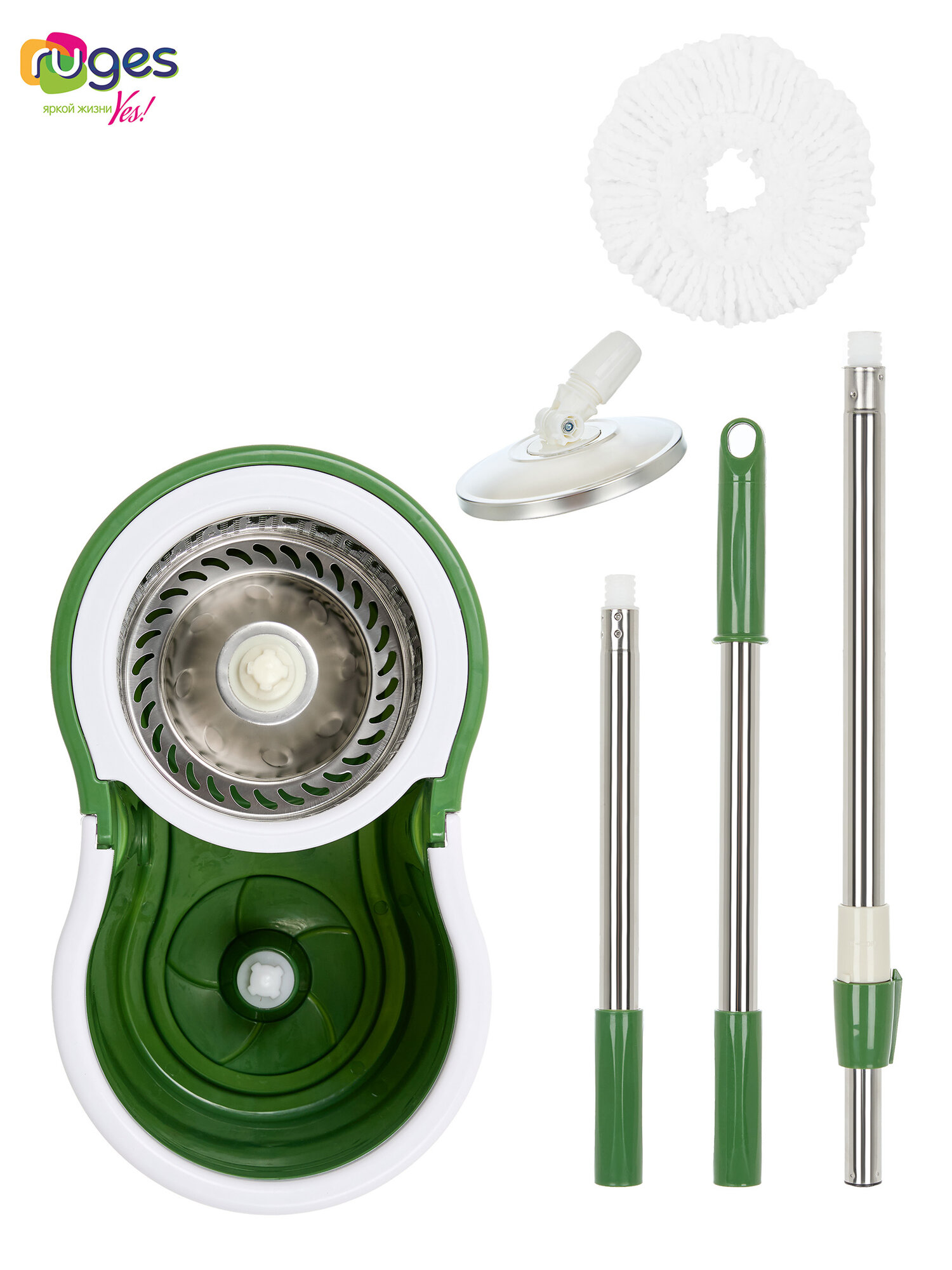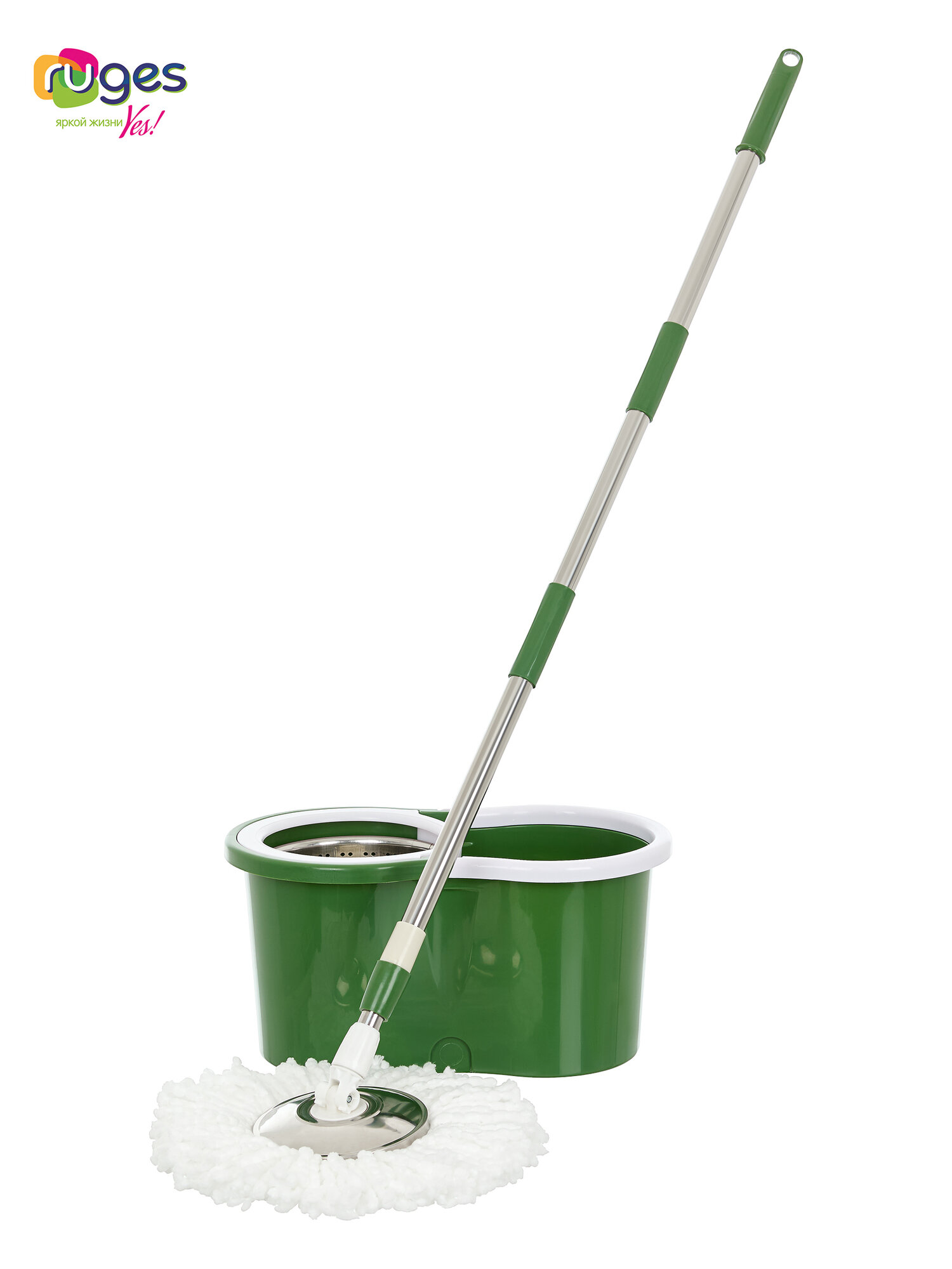 Комплект для уборки RUGES: швабра с отжимом и ведром (147 см ручка + 1 насадка) / швабра лентяйка вертушка / темно-зеленая: сравнение цен, характеристики, фото, актуальное наличие и цены.