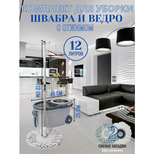 Купить Комплект для уборки: швабра, ведро с отжимом, насадки с доставкой по всей России.