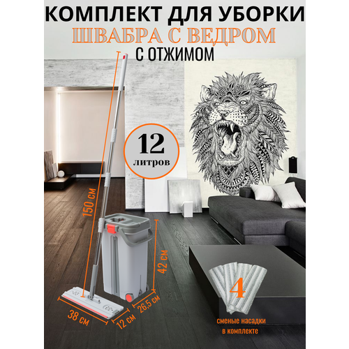 Комплект для уборки: швабра, ведро с отжимом, с насадками