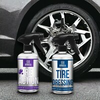 Кондиционер для резины Chemical Russian - это уникальный состав для ухода за внешними видами покрышек автомобилей, мотоциклов, грузовиков, автобусов и велосипедов. Этот состав содержит полимерные соединения, которые позволяют ему работать на поверхности длительное время, смягчать резину и предотвращать ее прTire Dressing + Reaction - Комплект для очистки и ухода за колесами, 500 мл + 500 мл, включает в себя