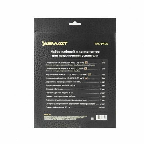 Купить Комплект для установки автоусилителя 4 канала SWAT PAC-P4CU с доставкой по всей России. Комплект для установки автоусилителя 4 канала SWAT PAC-P4CU: сравнение цен, характеристики, фото, актуальное наличие и цены.