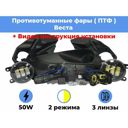 Комплект для установки противотуманных фар / ПТФ LED 50w / 2 режима / 3 линзы / для Лада Веста, Lada Vesta / Артикул PTFVesta.2r.3l_switch: сравнение цен, характеристики, фото, актуальное наличие и цены.