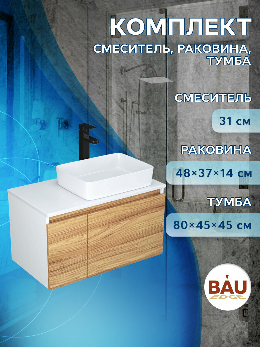 Купить Комплект для ванной, 3 предмета (Тумба Bau Dream Blackwood 80, раковина BAU Hotel 48х37, смеситель для раковины высокий Hotel Black, черный) с доставкой по всей России. Комплект для ванной, 3 предмета (Тумба Bau Dream Blackwood 80, раковина BAU Hotel 48х37, смеситель для раковины высокий Hotel Black, черный): сравнение цен, характеристики, фото, актуальное наличие и цены.