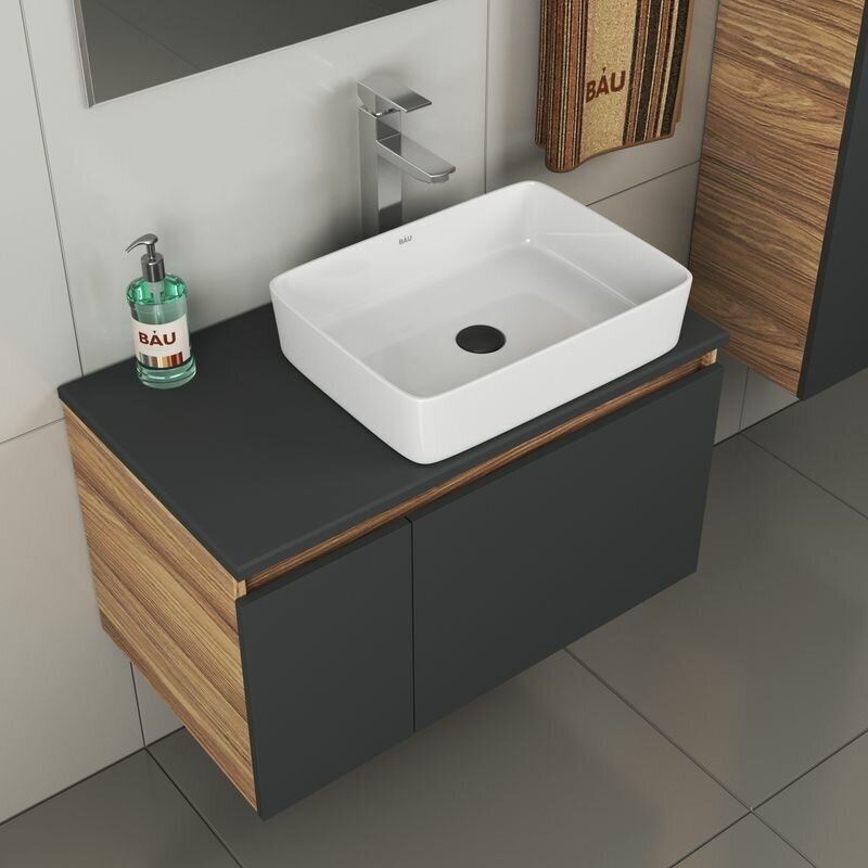 Купить Комплект для ванной, 4 предмета (тумба Bau 80, графит + раковина BAU Hotel 48х37 + смеситель Hotel Still, выпуск клик-клак, черный) с доставкой по всей России.