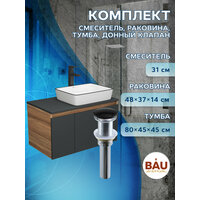 Комплект для ванной, 4 предмета (тумба Bau 80, графит + раковина BAU Hotel Black Rand 48х37 + смеситель Hotel Black, выпуск клик-клак, черный): сравнение цен, характеристики, фото, актуальное наличие и цены.