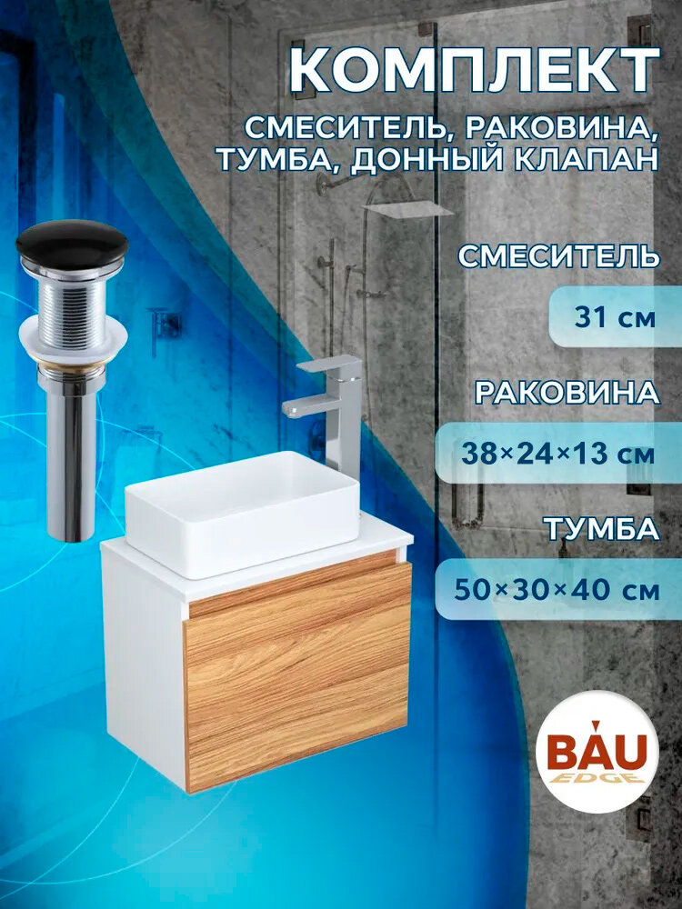 Купить Комплект для ванной, 4 предмета (тумба Bau Dream 50 + раковина BAU 38х24, белая + смеситель Hotel Still, выпуск клик-клак, черный) с доставкой по всей России. Комплект для ванной, 4 предмета (тумба Bau Dream 50 + раковина BAU 38х24, белая + смеситель Hotel Still, выпуск клик-клак, черный): сравнение цен, характеристики, фото, актуальное наличие и цены.
