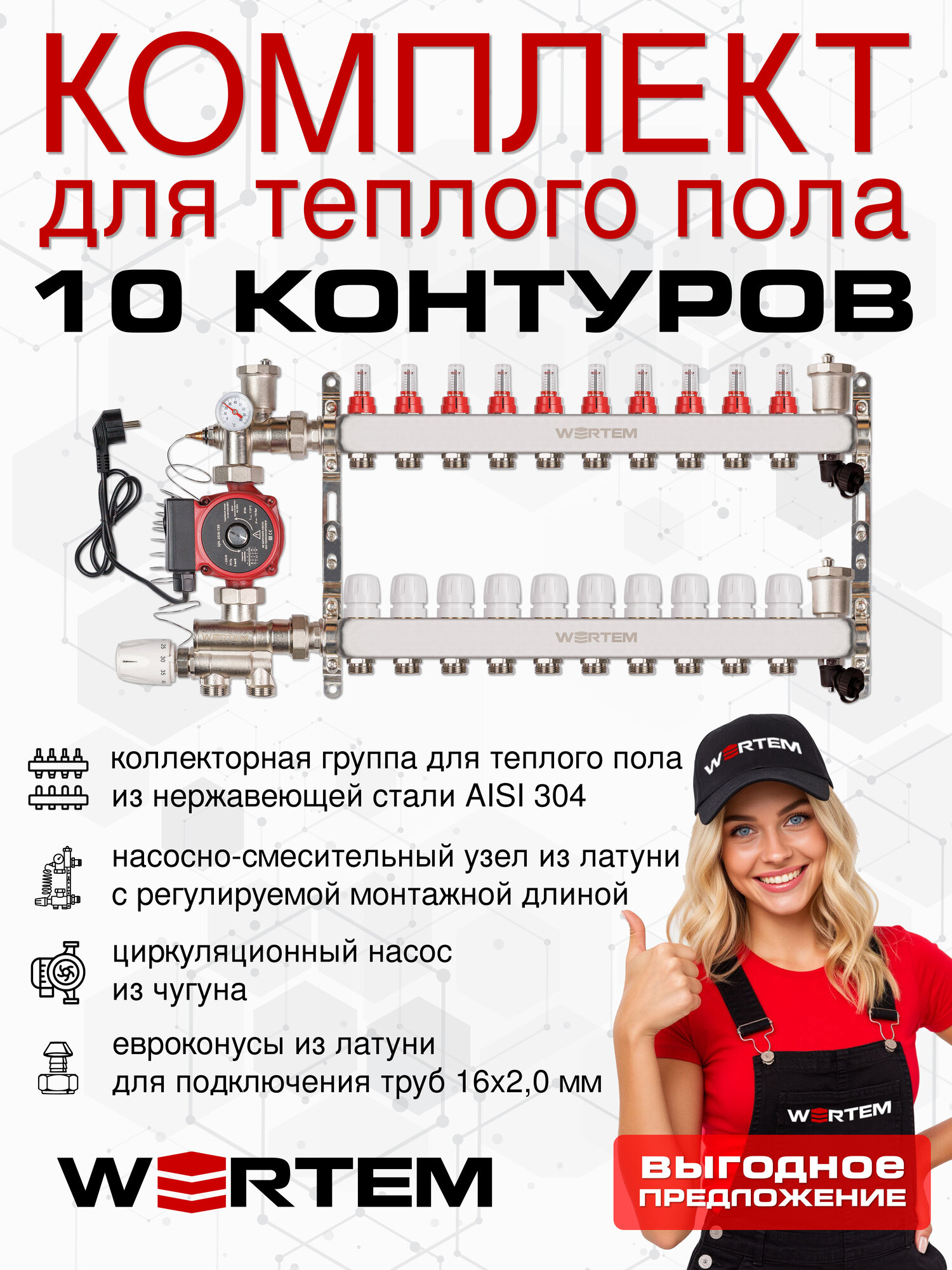 Комплект для водяного теплого пола на 10 контуров WERTEM с воздухоотводчиками до 135 м²: сравнение цен, характеристики, фото, актуальное наличие и цены.