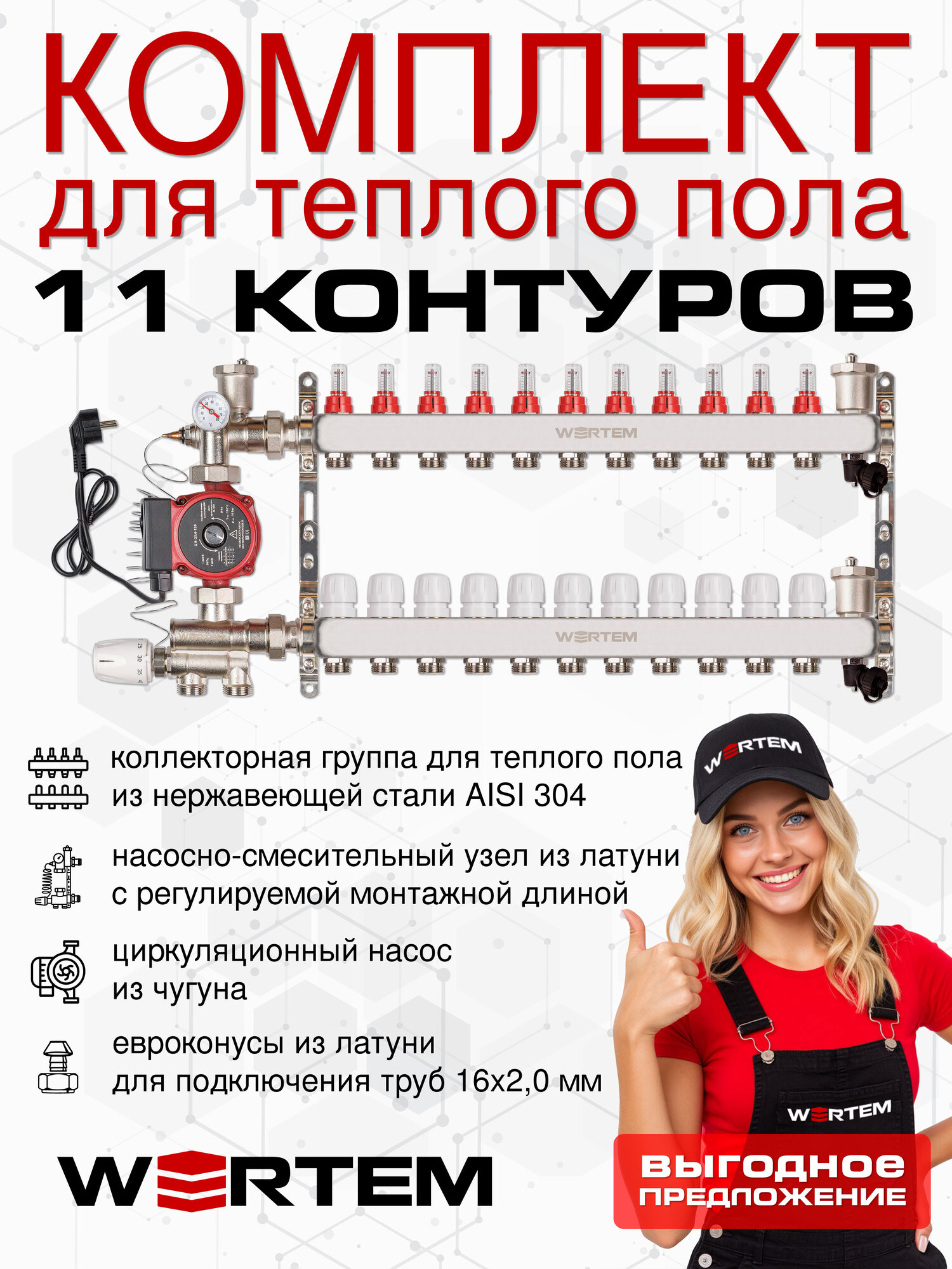 Комплект для водяного теплого пола на 11 контуров WERTEM с воздухоотводчиками до 150 м²: сравнение цен, характеристики, фото, актуальное наличие и цены.