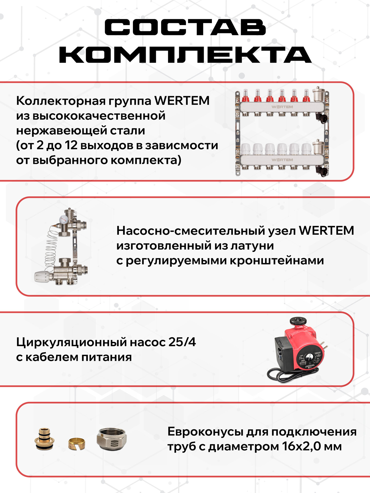 Комплект для водяного теплого пола на 3 контура WERTEM с воздухоотводчиками до 40 м²: сравнение цен, характеристики, фото, актуальное наличие и цены.