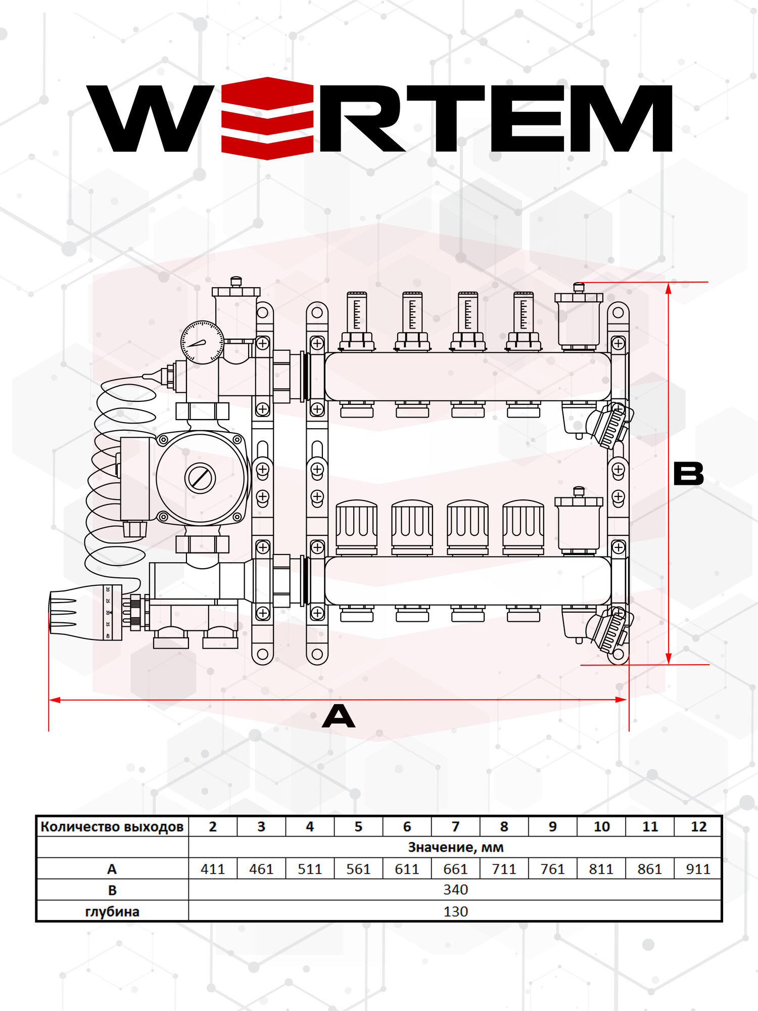 Комплект для водяного теплого пола на 5 контуров WERTEM с воздухоотводчиками до 70 м²: сравнение цен, характеристики, фото, актуальное наличие и цены.