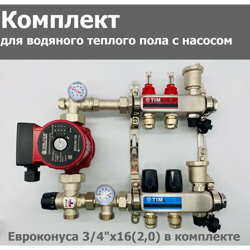 Купить Комплект для водяного теплого пола / с насосом/ до 40 м² / коллектор на 2 контура TIM с доставкой по всей России.