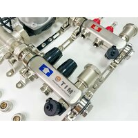 Используется в системах отопления с принудительной циркуляцией. Магистраль возможно подключить как с левой, так и с правой стороны. При этом крепление приспособлено таким образом, чтоб гребенку можно было разместить как в монтажном шкафу, так и прямо на стене. Конструкция коллекторной пары составлена так чтоб легко можно было промыть оба контура: прямого и обратного контура за счет наличия сливных кранов. Гребенка содержит автоматические воздухоотводчики, расположенные на обоих коллекторах и служат для спуска воздуха, который может образоваться во время заполнения системы или ее эксплуатации. Область применения KCS5002 Коллекторные группы из нержавеющей стали распределяют теплоноситель по контурам теплого водяного пола. Лучше всего снабдить гребенку торцевыми шаровыми кранами, которые дадут возможность отсечь магистраль при проведении технического обслуживания или при протекании. Ручные регуляторы на обратке допускается оснащать термоэлектрическими приводами, подключенными к комнатным термостатам, что позволит изменять обогрев на основании настроек температуры воздуха в помещении. Рекомендуется использовать это оборудование совместно со смесительными узлами для понижения температуры отопления до величин, предназначенных для теплых водяных полов.