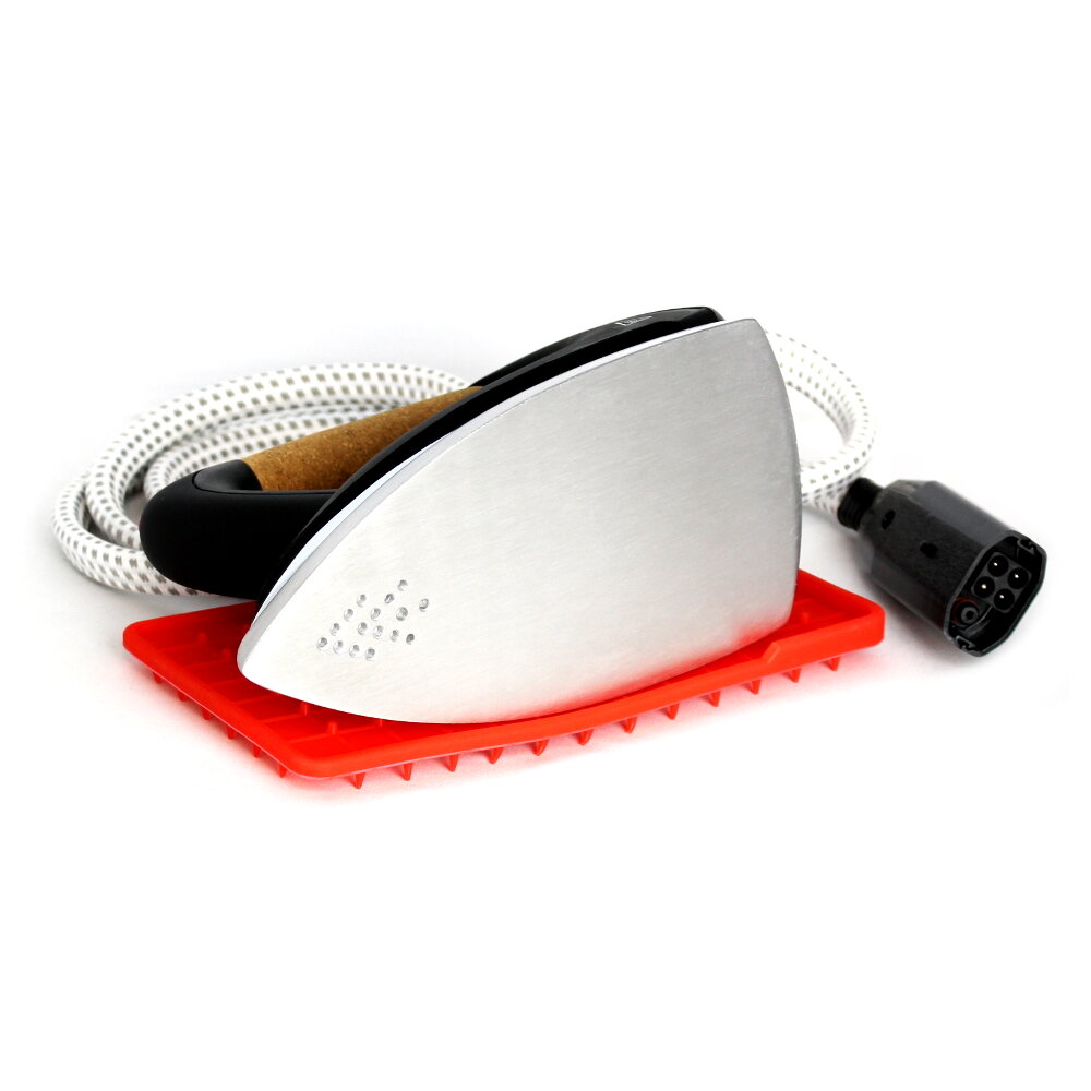 Паровой утюг для модели отпаривателя MIE Forza – это прибор, который позволяет качественно и быстро гладить одежду из различных видов тканей. Утюг оснащен толстой подошвой, которая обеспечивает стабильную и высокую жаропрочность. Утюг для отпаривателя MIE Forza оснащен терморегулятором, который позволяет выбрать подходящий температурный режим и парошлангом 210 см. В комплектацию парового утюга входит: - тефлоновая насадка; - термостойкий коврик.