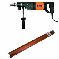 Данный комплект- это представляет собой готовое решение для сверления отверстий диаметром 52мм под кондиционеры и/или другие индинерные коммуникации. Комплект включает себя двухскоростную дрель Cayken SCY 916PD/2PD и коронку сухого алмазного сверления Diamond Hit диаметром 52мм, длиной 4500мм. Ручная дрель по алмазному сверлению с функцией микроудара предназначена для сверления технологических отверстий под различные коммуникации. Внешняя резьба вала 1 1/4"Внутренняя резьба вала G 1/2" Поставляется в пластиковом кейсе.