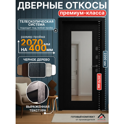 Комплект дверных откосов МДФ экошпон (телескопический ) 400мм цвет Чёрное дерево, для установки своими руками. добор 2070*12*400(2.5шт) наличники 2200*10*70 (2.5шт)телескопический материал, позволяет исправить завалы и перепады стен!