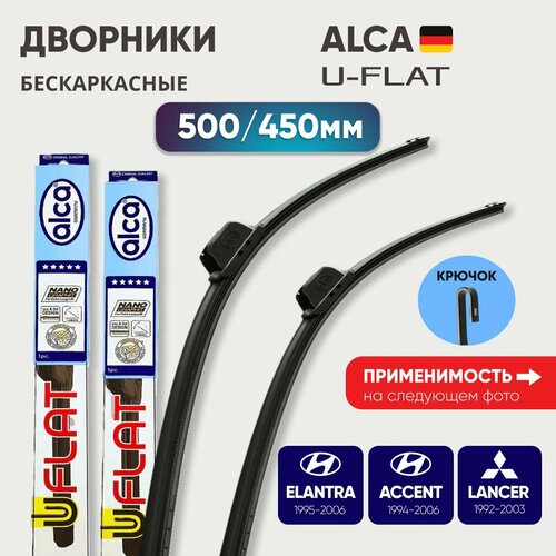 Купить Комплект дворников бескаркасных 500/450 мм для Hyndai Elantra 3 (XD) / 4 (HD); Mitsubishi Lancer 8; Hyundai Accent ALCA U-Flat (Германия) с доставкой по всей России.