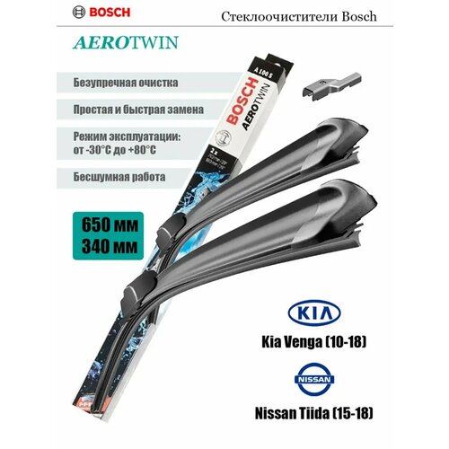 Комплект дворников BOSCH Aerotwin A583S 650мм/340мм: Kia Venga (10-18), Nissan Tiida (15-18): сравнение цен, характеристики, фото, актуальное наличие и цены.