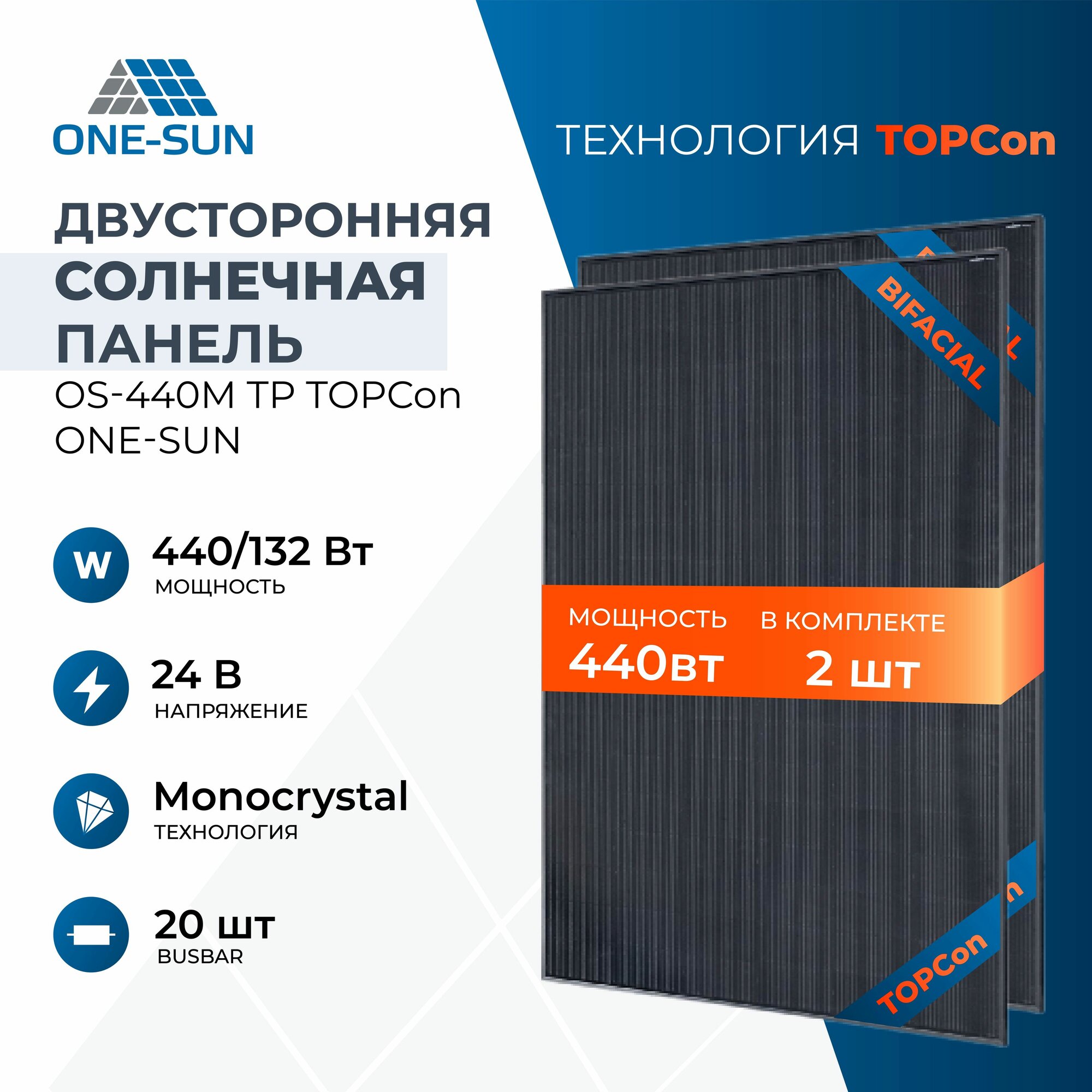 Комплект двусторонних солнечных панелей OS-440M TP TOPCon One-Sun, солнечная батарея для дома, для дачи, 24В, 2шт.: сравнение цен, характеристики, фото, актуальное наличие и цены.